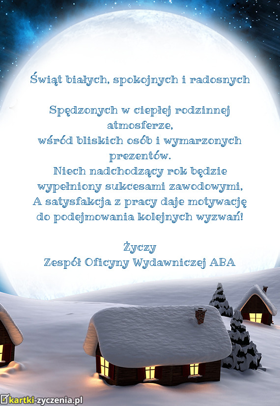 Świąt białych, spokojnych i radosnych - Gotowa Kartka bożonarodzeniowa
