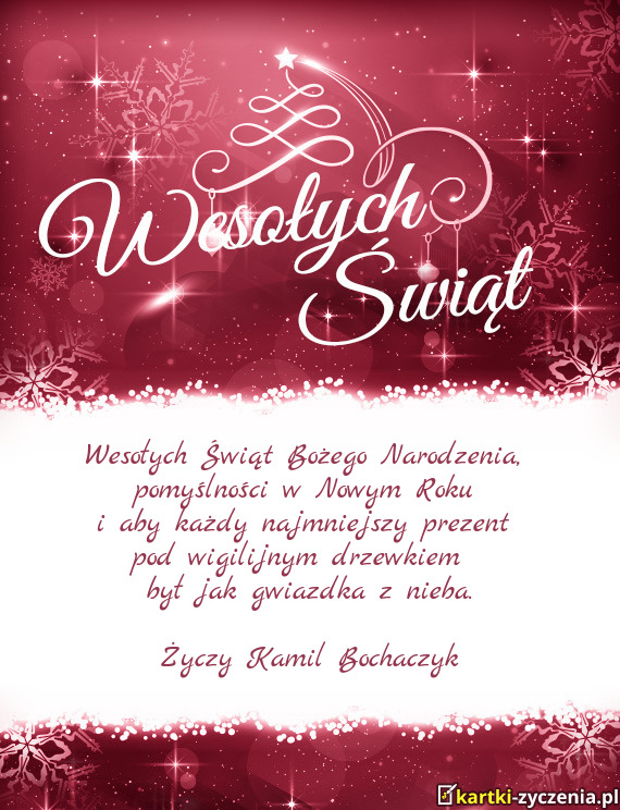 Świąt Bożego Narodzenia i Nowego Roku życzymy wielu radosnych i ciepłych chwil, odpoczynku przy - Gotowa Kartka bożonarodzeniowa