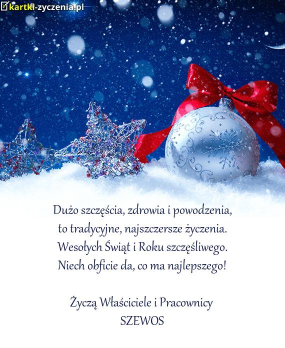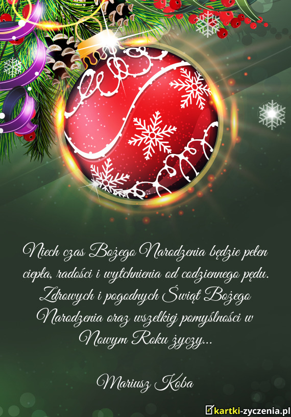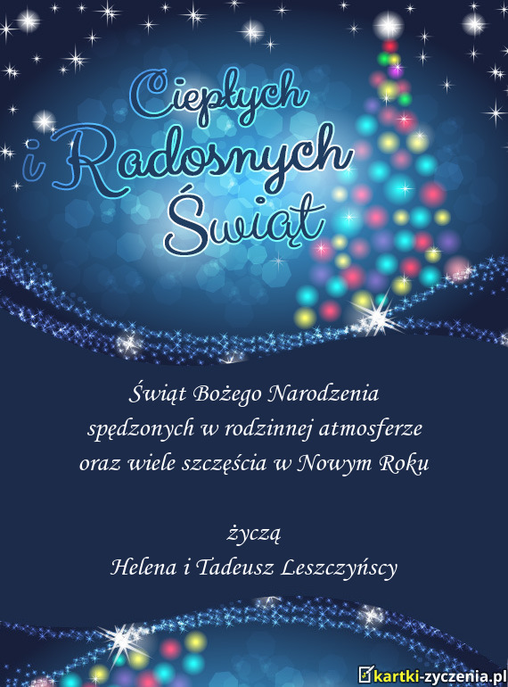 Świąt Bożego Narodzenia spędzonych w rodzinnej atmosferze oraz wiele szczęścia w Nowym Roku - Gotowa Kartka bożonarodzeniowa