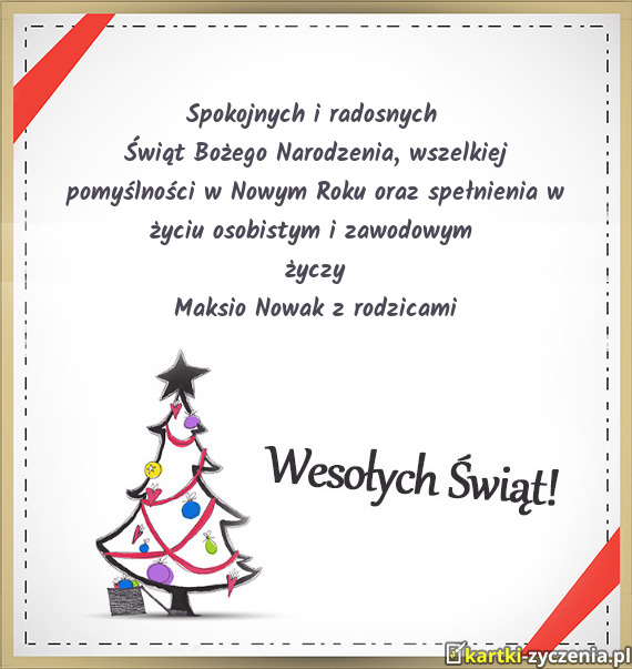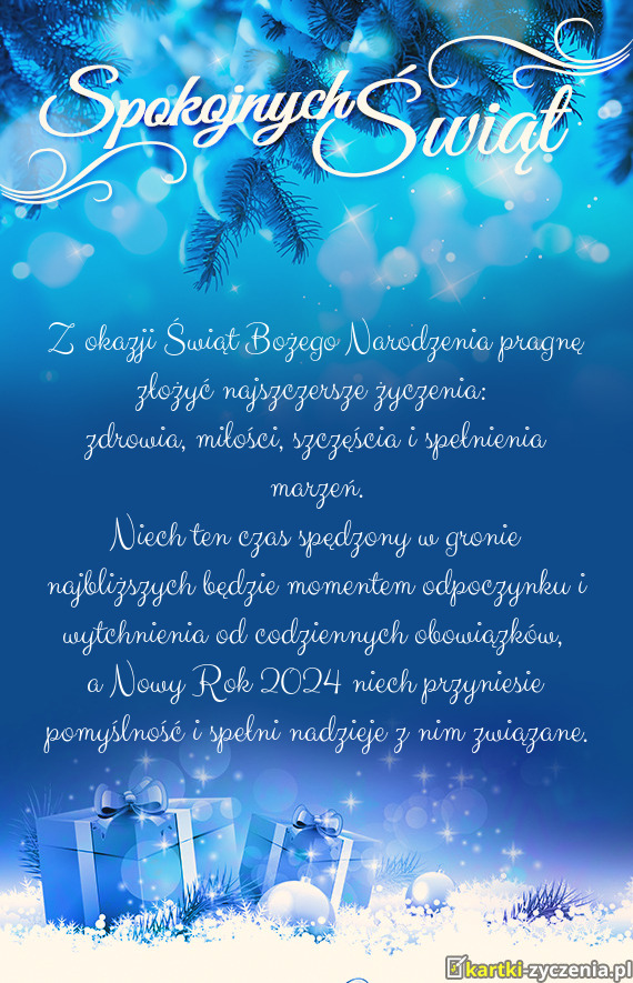 Świąt Bożego Narodzenia, wszelkiej pomyślności w Nowym Roku oraz spełnienia w życiu osobistym - Gotowa Kartka bożonarodzeniowa