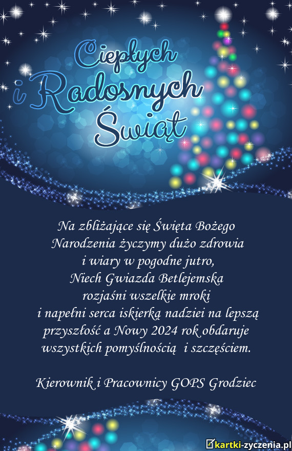 Świąt pełnych radości, ciepła i niepowtarzalnej, rodzinnej atmosfery, a także pomyślności i - Gotowa Kartka bożonarodzeniowa