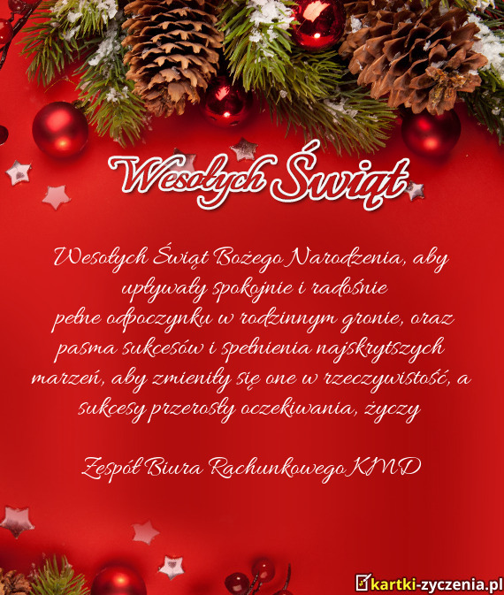 Świąt wypełnionych miłością i radością, niosących spokój i optymizm. Nowego Roku spełniaj - Gotowa Kartka bożonarodzeniowa