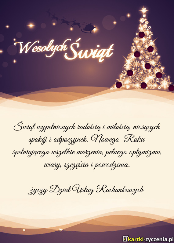Świąt wypełnionych radością i miłością, niosących spokój i odpoczynek. Nowego Roku spełn - Gotowa Kartka bożonarodzeniowa