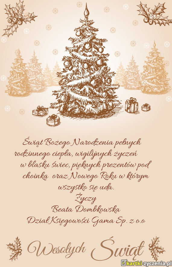 świec, pięknych prezentów pod choinką oraz Nowego Roku w którym wszystko się uda - Gotowa Kartka bożonarodzeniowa