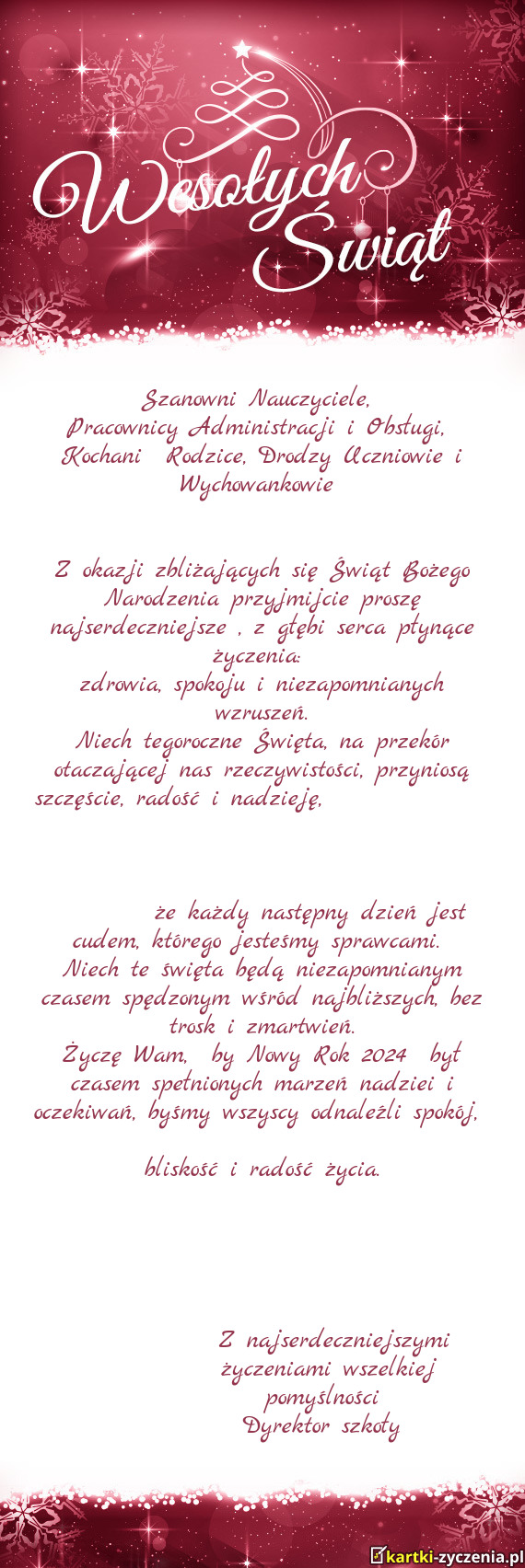 Szanowni Nauczyciele - Gotowa Kartka bożonarodzeniowa