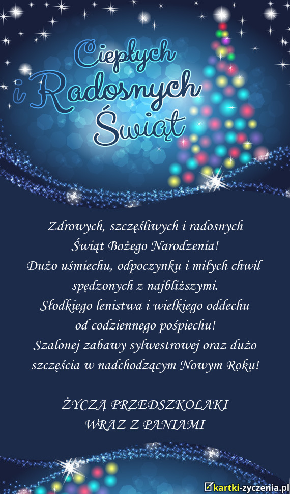 Spokojnych i radosnych świąt spędzonych w gronie najbliższych osób, a także zdrowia, szczęścia i wielkiej radości