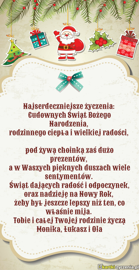 Tobie i całej Twojej rodzinie życzą Monika, Łukasz i Ola