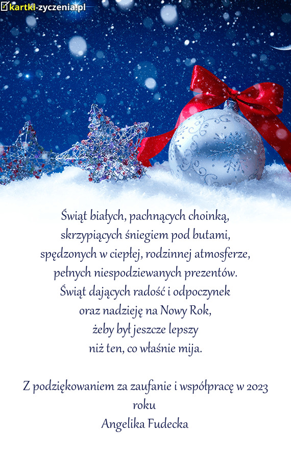 Świąt białych, pachnących choinką,