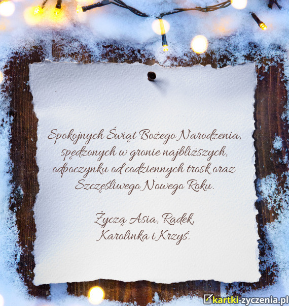 Ŭyczą Agata, Kacper i Milenka - Gotowa Kartka bożonarodzeniowa