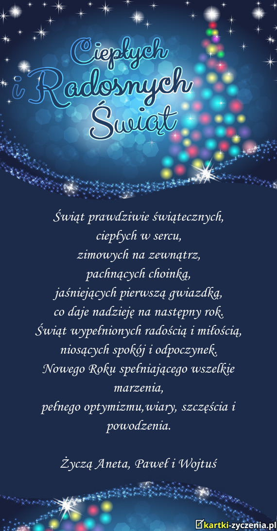 ūyczą Aneta, Paweł i Wojtuś - Gotowa Kartka bożonarodzeniowa
