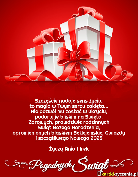 ūyczą Ania I Irek - Gotowa Kartka bożonarodzeniowa