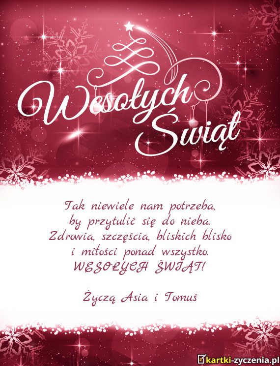 ūyczą Asia i Tomuś - Gotowa Kartka bożonarodzeniowa