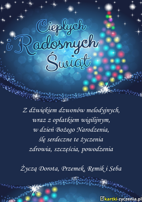 ūyczą Dorota, Przemek, Remik i Seba - Gotowa Kartka bożonarodzeniowa