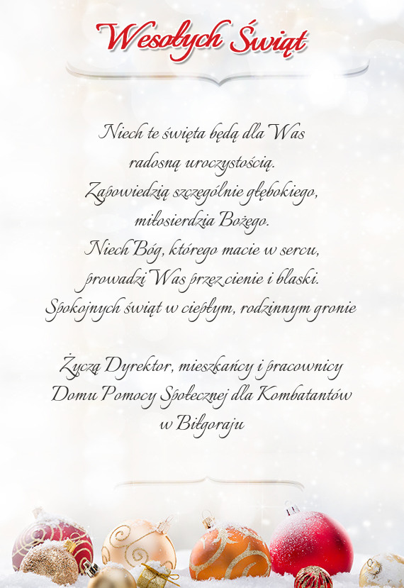 ūyczą Dyrektor, mieszkańcy i pracownicy - Gotowa Kartka bożonarodzeniowa