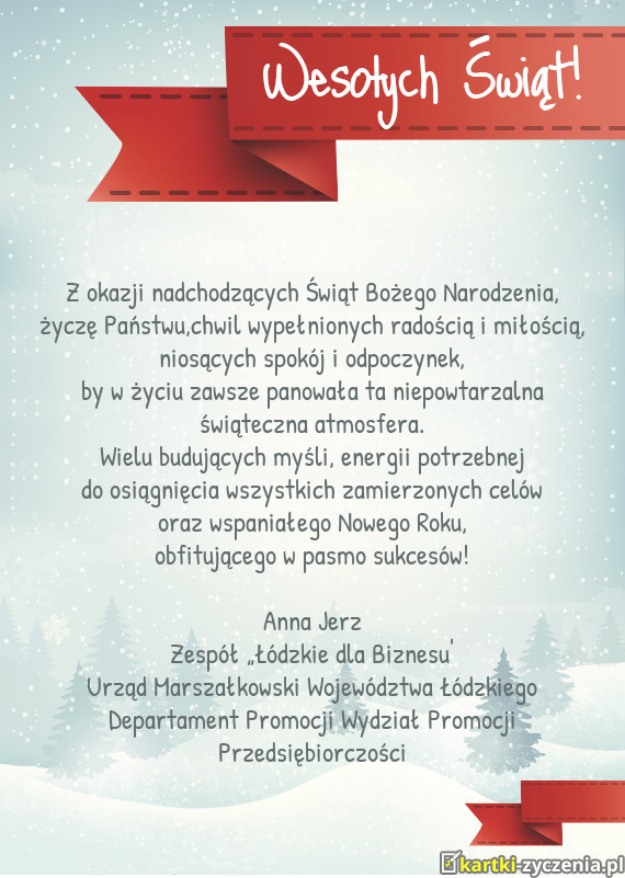 ūyczą Dyrektor, Pracownicy, Uczniowie Szkoły Podstawowej w Nadbrzeżu - Gotowa Kartka bożonarodzeniowa