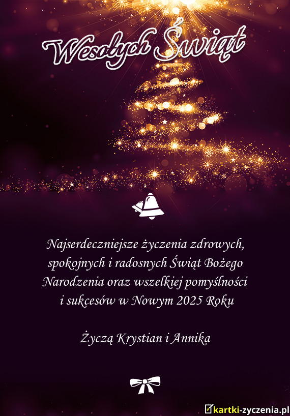 ūyczą Krystian i Annika - Gotowa Kartka bożonarodzeniowa