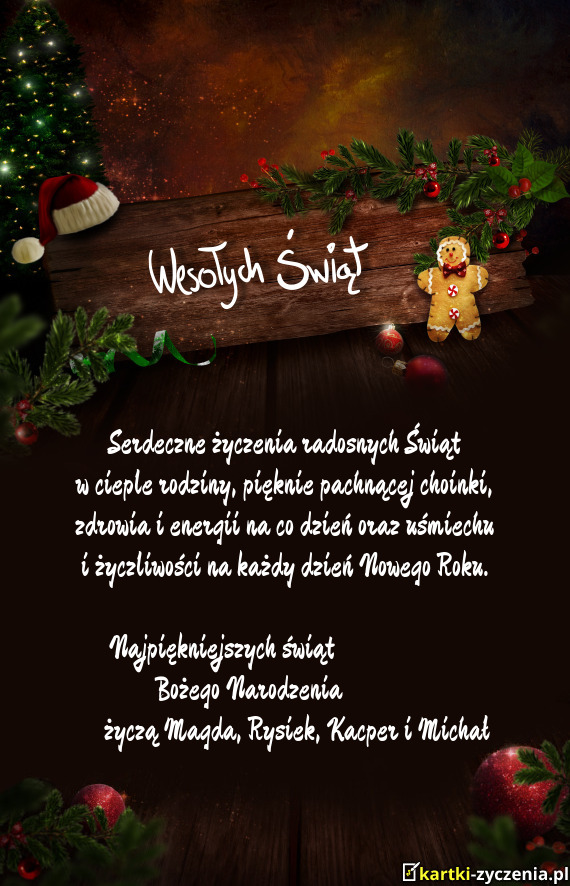 Ŭyczą Magda, Rysiek, Kacper i Michał - Gotowa Kartka bożonarodzeniowa