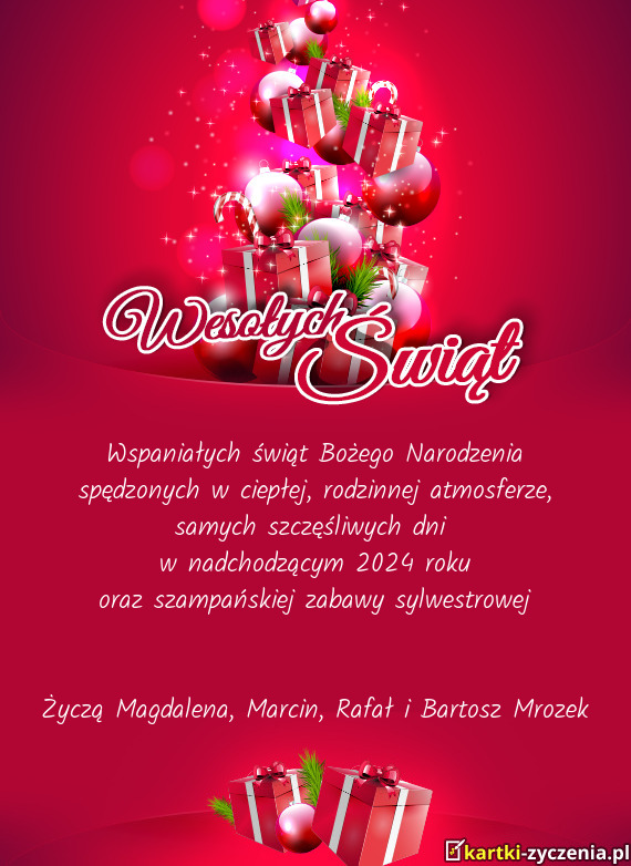 ūyczą Magdalena, Marcin, Rafał i Bartosz Mrozek - Gotowa Kartka bożonarodzeniowa