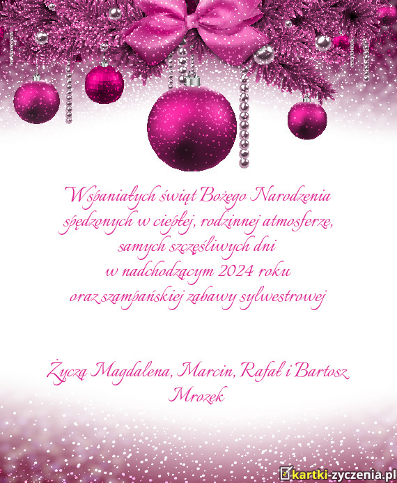 ūyczą Magdalena, Marcin, Rafał i Bartosz Mrozek - Gotowa Kartka bożonarodzeniowa