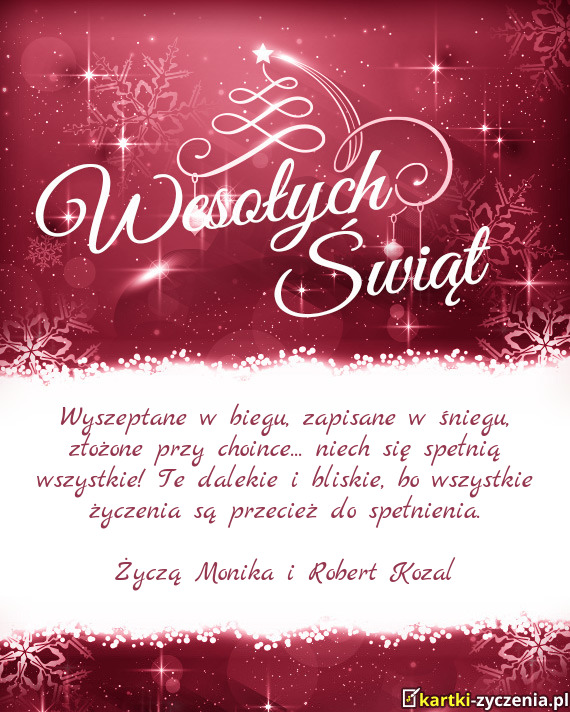 ūyczą Monika i Robert Kozal - Gotowa Kartka bożonarodzeniowa