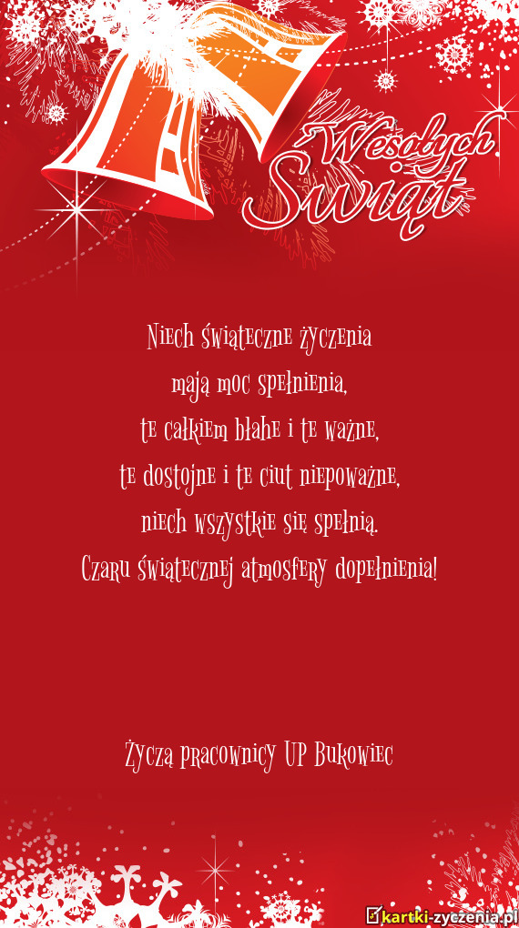 ūyczą pracownicy UP Bukowiec - Gotowa Kartka bożonarodzeniowa