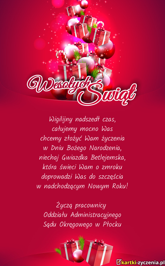 ūyczą pracownicy - Gotowa Kartka bożonarodzeniowa