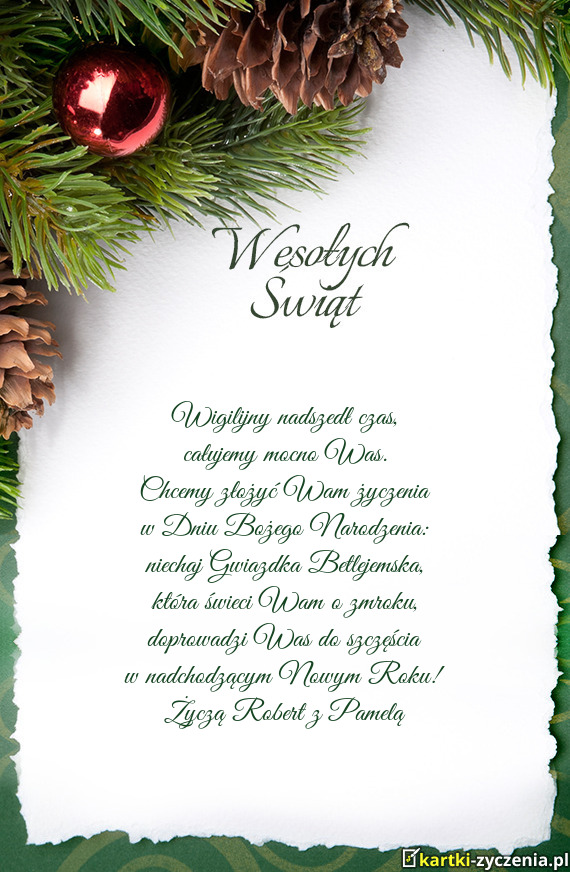 ūyczą Robert z Pamelą - Gotowa Kartka bożonarodzeniowa