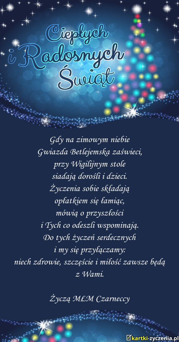 Spokojnych i radosnych świąt spędzonych w gronie najbliższych osób, a także zdrowia, szczęścia i wielkiej radości.
