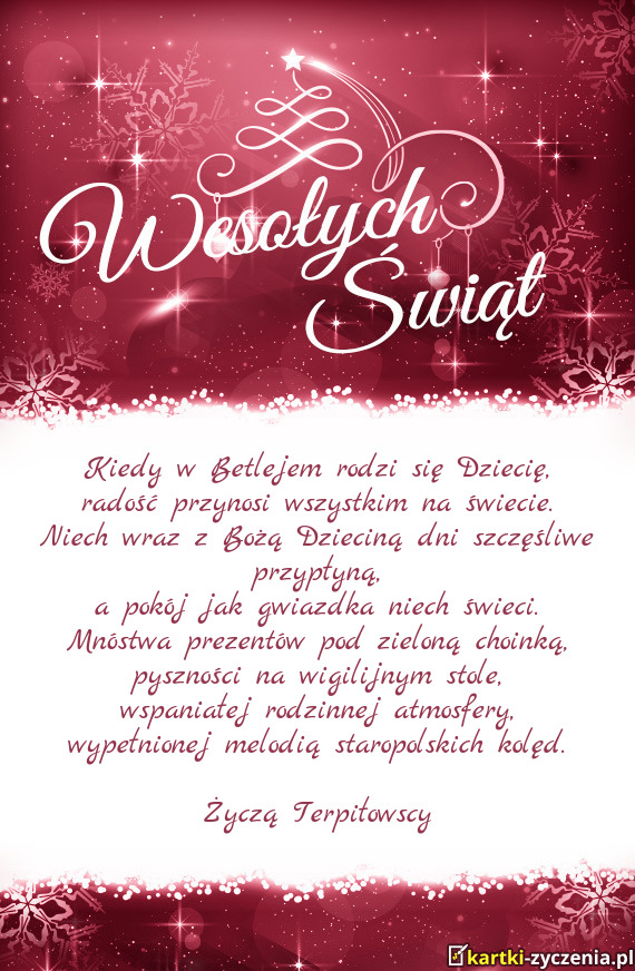 ūyczą Terpiłowscy - Gotowa Kartka bożonarodzeniowa