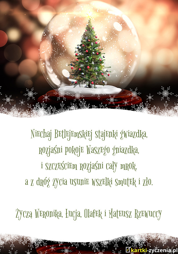 ūyczą Weronika, Łucja, Olafek i Mateusz Rzewuccy - Gotowa Kartka bożonarodzeniowa