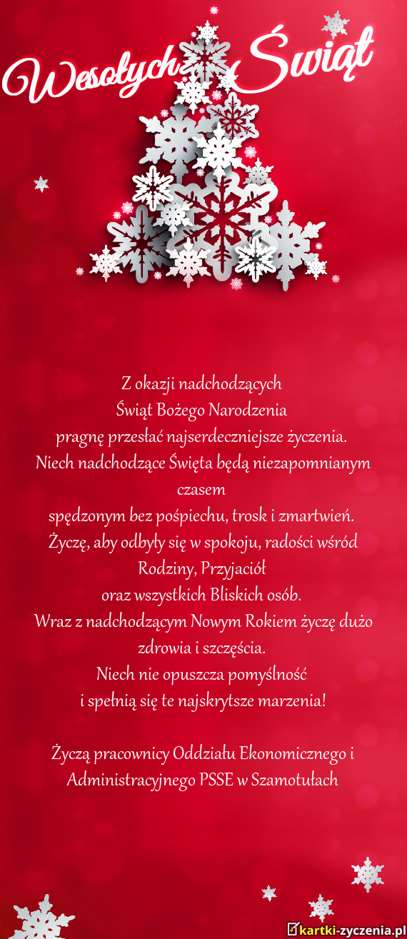 Życzą pracownicy Oddziału Ekonomicznego i Administracyjnego PSSE w Szamotułach