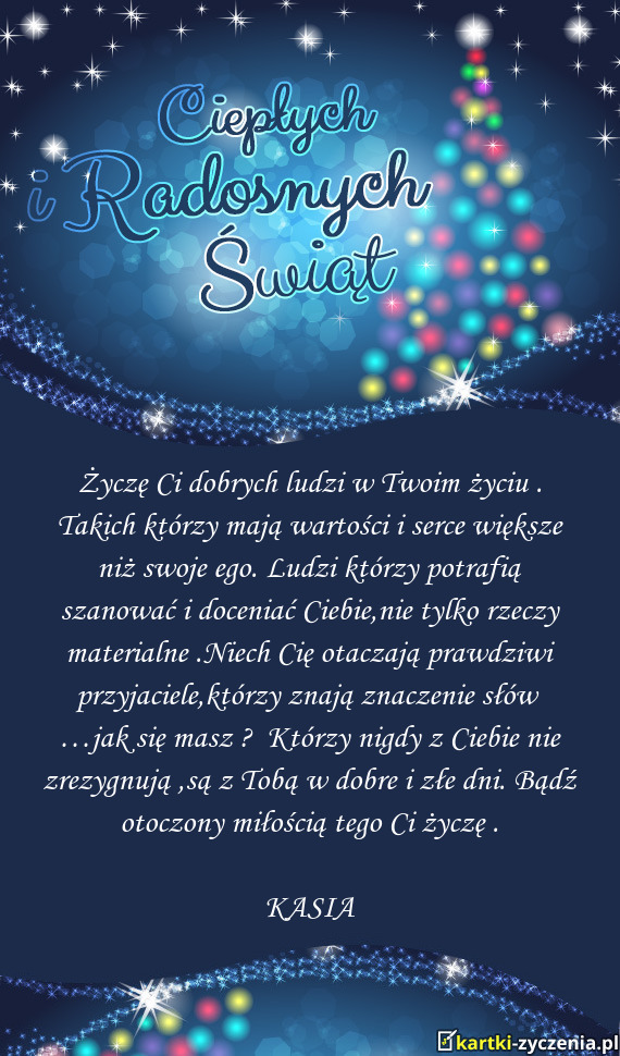ūyczę Ci dobrych ludzi w Twoim życiu . Takich którzy mają wartości i serce większe niż swoje - Gotowa Kartka bożonarodzeniowa