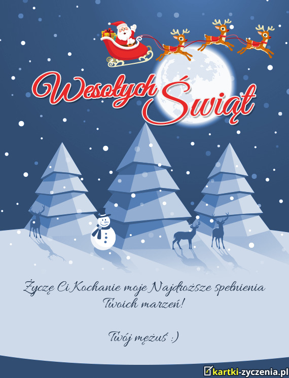 ūyczę Ci Kochanie moje Najdroższe spełnienia Twoich marzeń - Gotowa Kartka bożonarodzeniowa