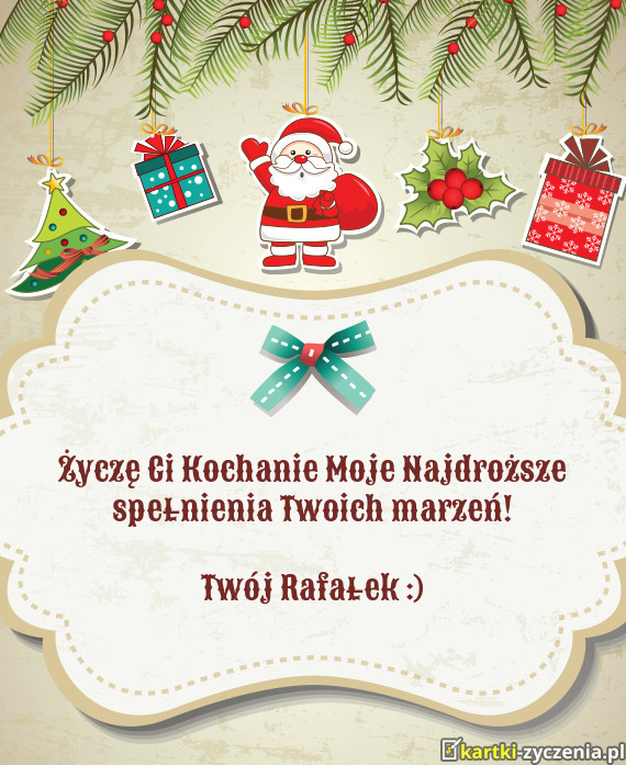 ūyczę Ci Kochanie Moje Najdroższe spełnienia Twoich marzeń - Gotowa Kartka bożonarodzeniowa