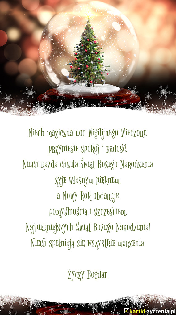Ŭyczę Ci Twych marzeń spełnienia - Gotowa Kartka bożonarodzeniowa
