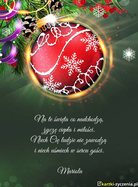 Ŭyczę ciepła i miłości - Gotowa Kartka bożonarodzeniowa