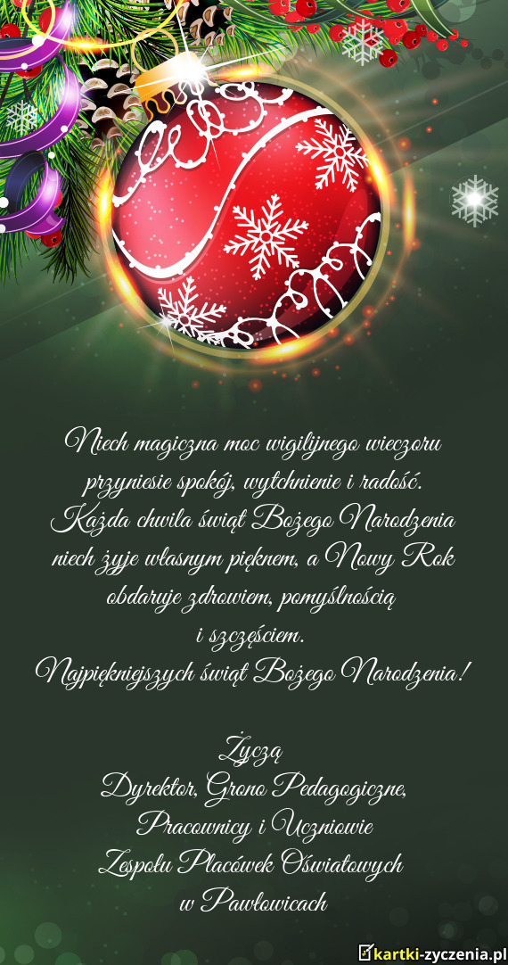 Ŭyczę Tobie ciepła rodzinnego, niegasnącej przyjaźni oraz światła, które zawsze prowadzi ta - Gotowa Kartka bożonarodzeniowa