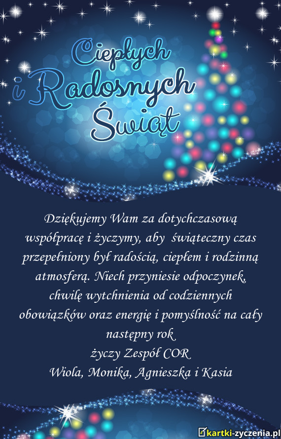 Niech radość i pokój Świąt Bożego Narodzenia towarzyszy Wam przez cały Nowy Rok.