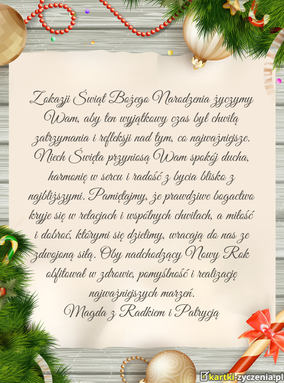 Niech te święta Bożego Narodzenia przyniosą Wam wiele radości – wspólnie spędzonego czasu, rodzinnej atmosfery, dużo radości i tyle optymizmu, by nie skończył się przez cały zbliżający się rok.