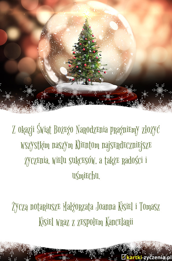 Życzą notariusze Małgorzata Joanna Kisiel i Tomasz Kisiel wraz z zespołem Kancelarii
