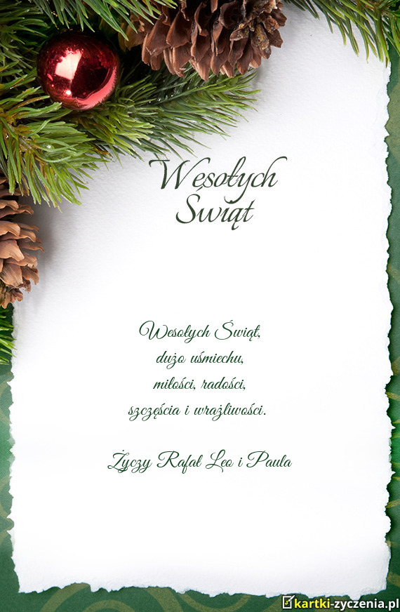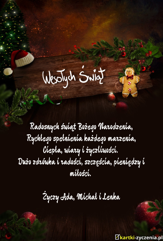 ūyczy Ada, Michał i Lenka - Gotowa Kartka bożonarodzeniowa