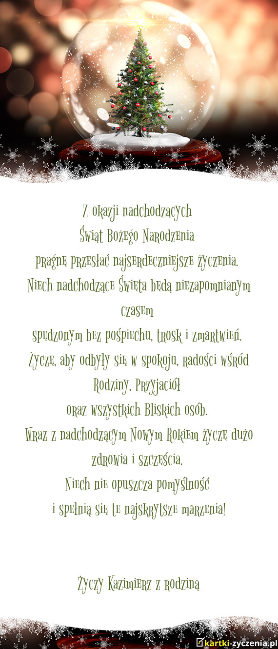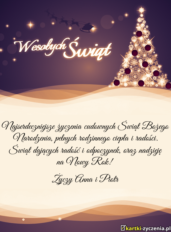 ūyczy Anna i Piotr - Gotowa Kartka bożonarodzeniowa