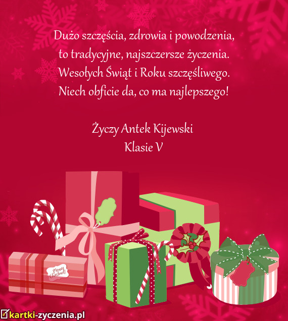 ūyczy Antek Kijewski - Gotowa Kartka bożonarodzeniowa