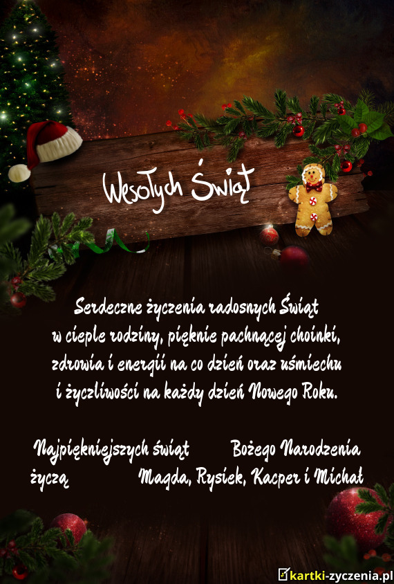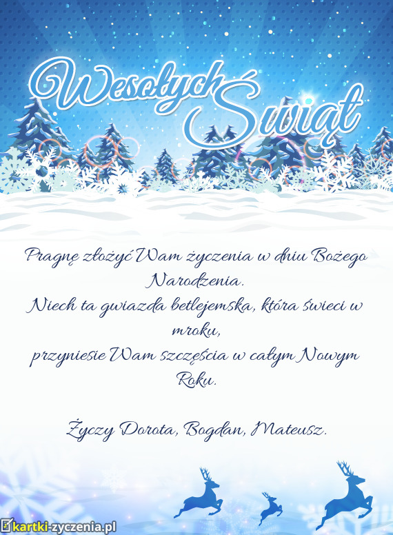 ūyczy Dorota, Bogdan, Mateusz - Gotowa Kartka bożonarodzeniowa