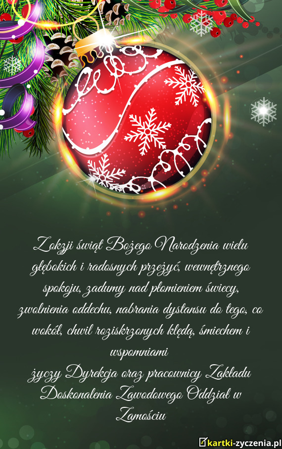 Ŭyczy Dyrekcja oraz pracownicy Zakładu Doskonalenia Zawodowego Oddział w Zamościu - Gotowa Kartka bożonarodzeniowa