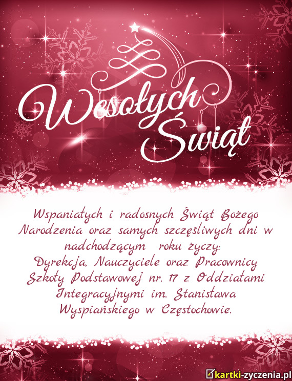 ūyczy Dyrektor, Pracownicy oraz Uczniowie - Gotowa Kartka bożonarodzeniowa
