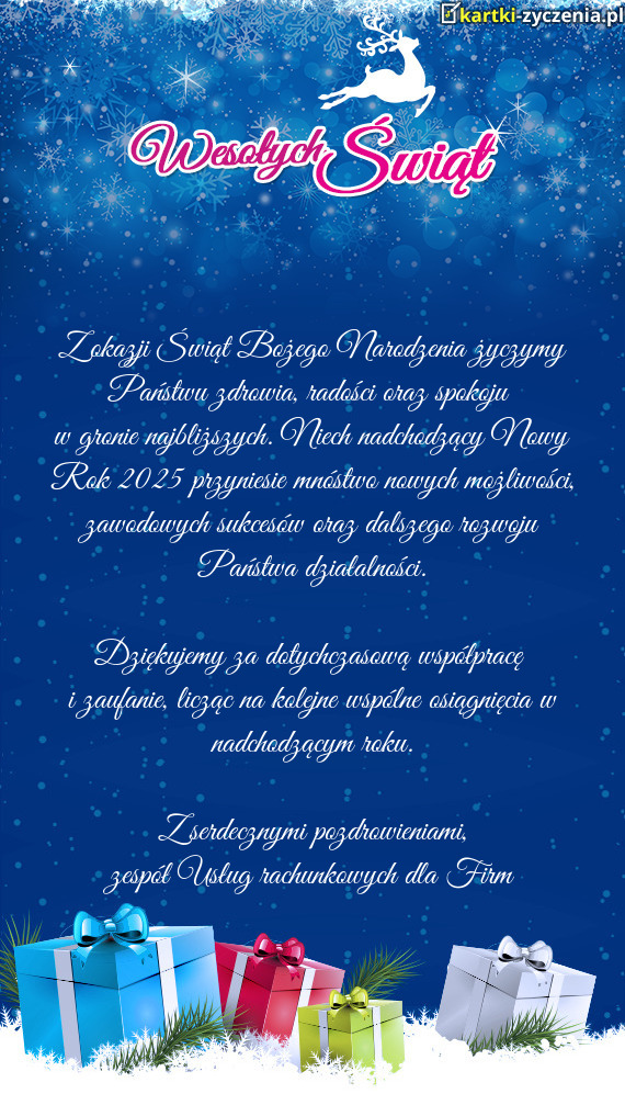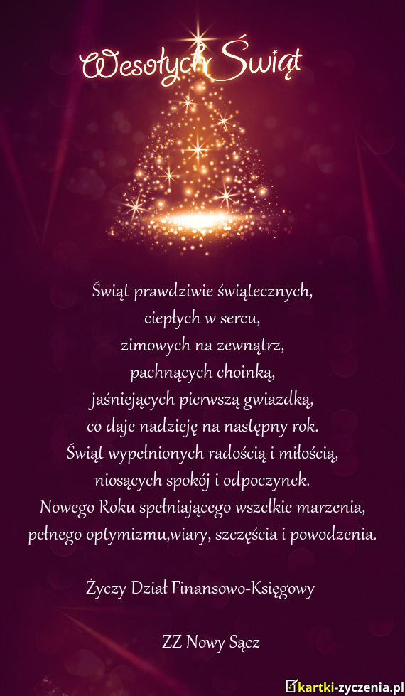 ūyczy Dział Finansowo-Księgowy ZZ Nowy Sącz - Gotowa Kartka bożonarodzeniowa