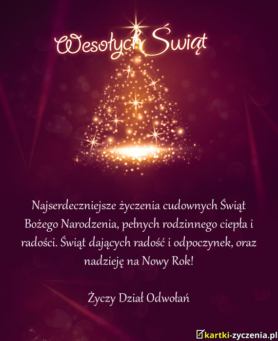 ūyczy Dział Odwołań - Gotowa Kartka bożonarodzeniowa