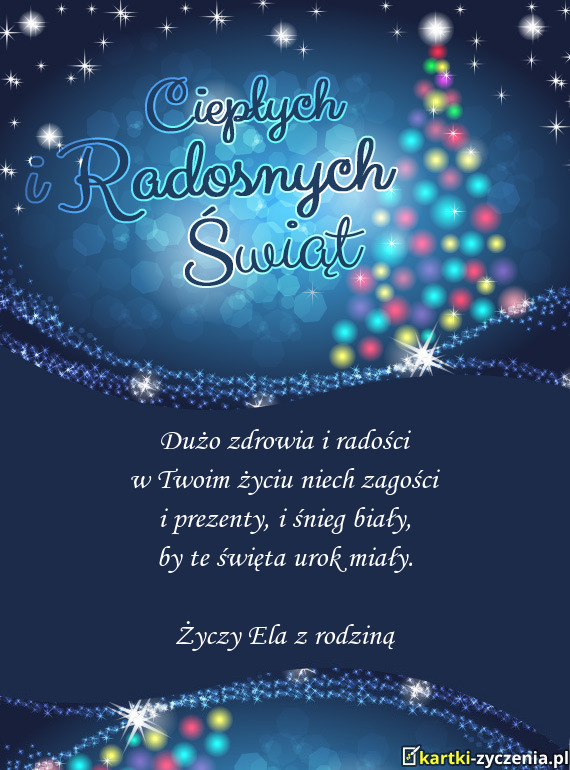 ūyczy Ela z rodziną - Gotowa Kartka bożonarodzeniowa