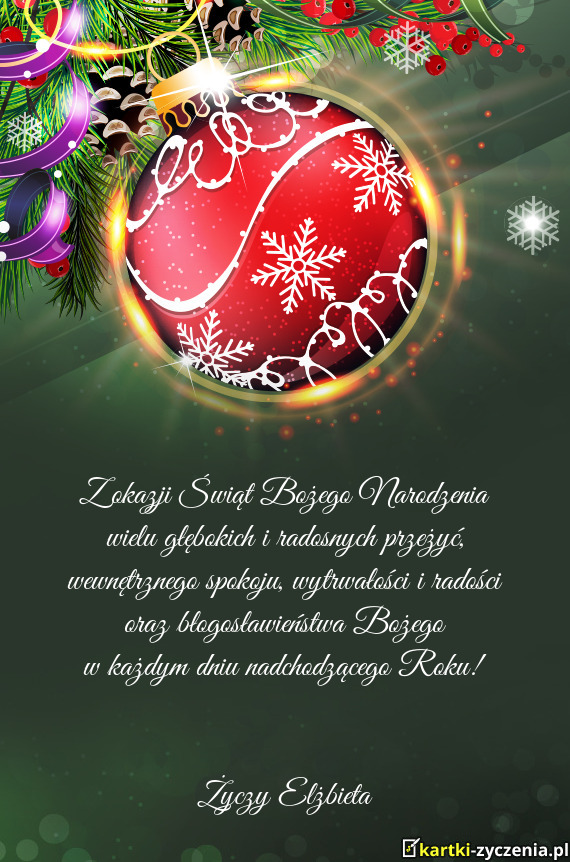ūyczy Elżbieta - Gotowa Kartka bożonarodzeniowa